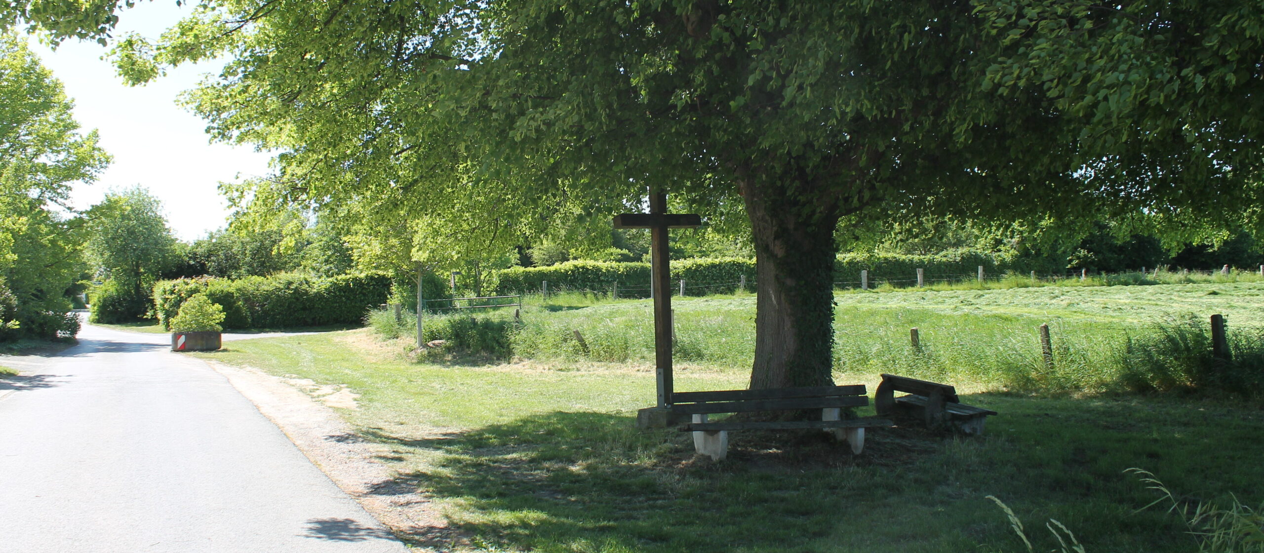 Im Psalm 90 heißt es: „Die Zeit unseres Lebens währt siebzig Jahre, wenn es hochkommt, achtzig.“ – Ich kann danken für meine bisherigen Lebensjahre, für alles, was mein Leben gut und schön, froh und hell macht – und bitten, dass Gott mich vor Schlimmen bewahrt, dass er mich auf dem Pilgerradweg und auf allen Lebenswegen beschützt. Ich kann bitten für die Menschen, denen es nicht gut geht, die diesen Pilgerradweg gar nicht fahren können. All meinen Dank, meine Bitten und Fürbitten hefte ich gedanklich an dieses Kreuz und vertraue sie Jesus an, der weiß, wie es uns Menschen ergehen kann.