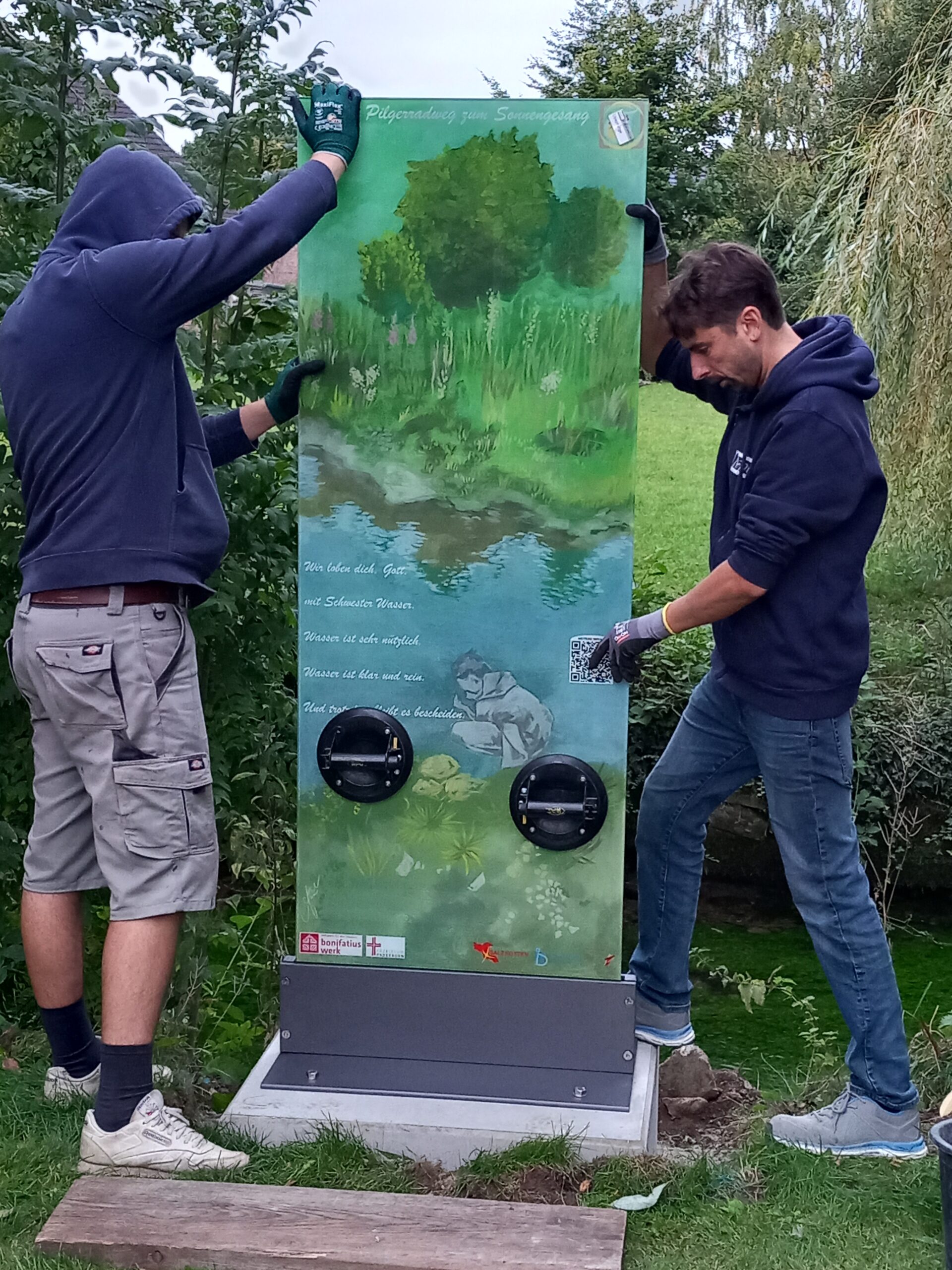 Aufstellen der Glasstelen in den einzelnen Orten durch die Glaserei Peters. Weitere Fotos finden Sie unten in der Fotogalerie.