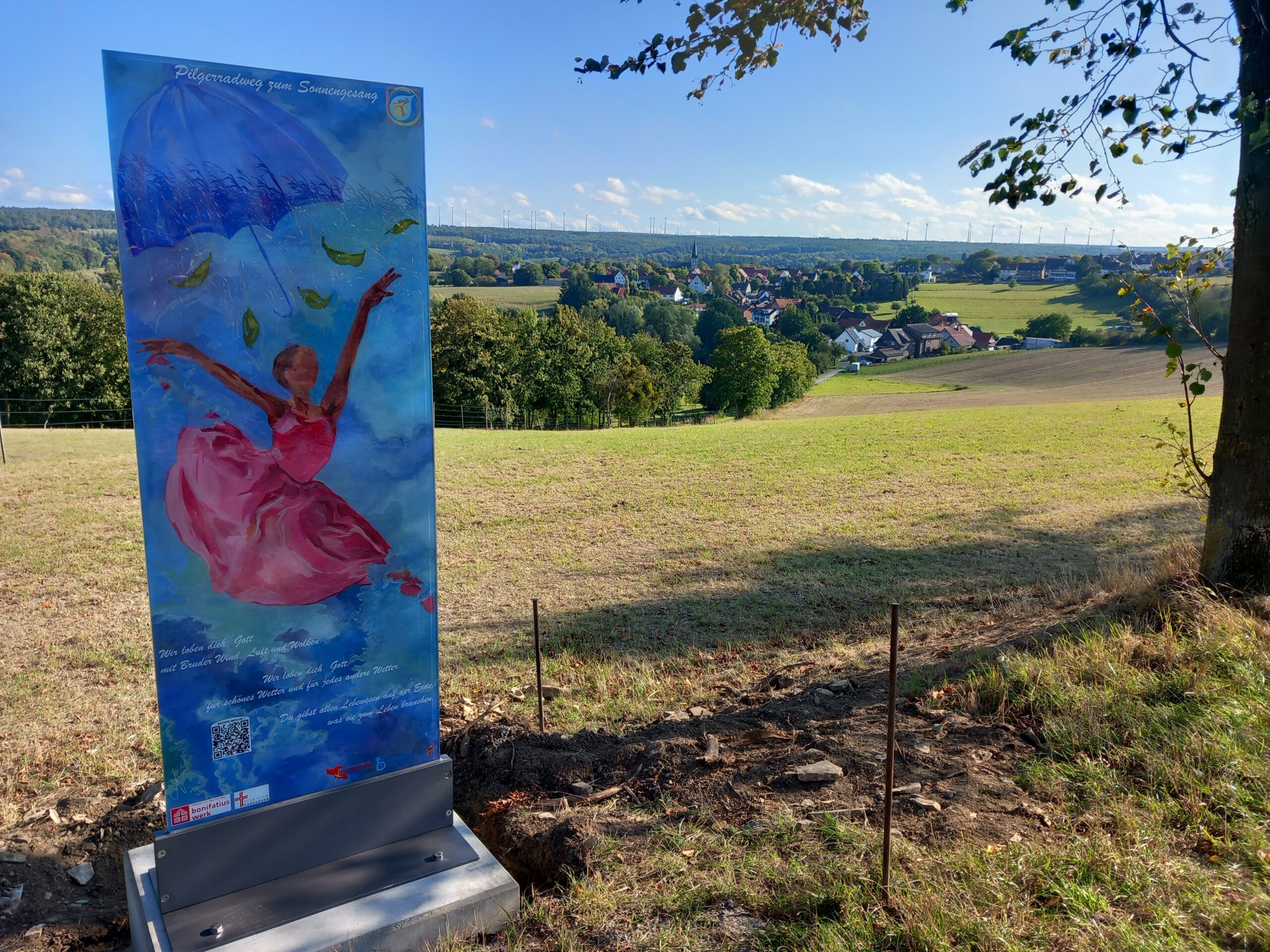 Herausvordernt dann der Weg von Verne nach Tudorf, da nicht alle Fahrradfahrer mit einem E-Bike ausgestattet waren. Ein herrlicher Ausblick am Standort der Stehle über das Almetal entschädigt für die Strapazen. Über Upsprunge ging es dann ins "Hedertal" und zurück zum Gradierwerk nach Salzkotten. Alle Teilnehmenden war begeistert vom Radpilgerweg und lobten die Gestaltung der elf Stehlen. Viele der Teilnehmenden sprachen davon, nicht zum letzten Mal den Radpilgerweg gefahren zu sein.