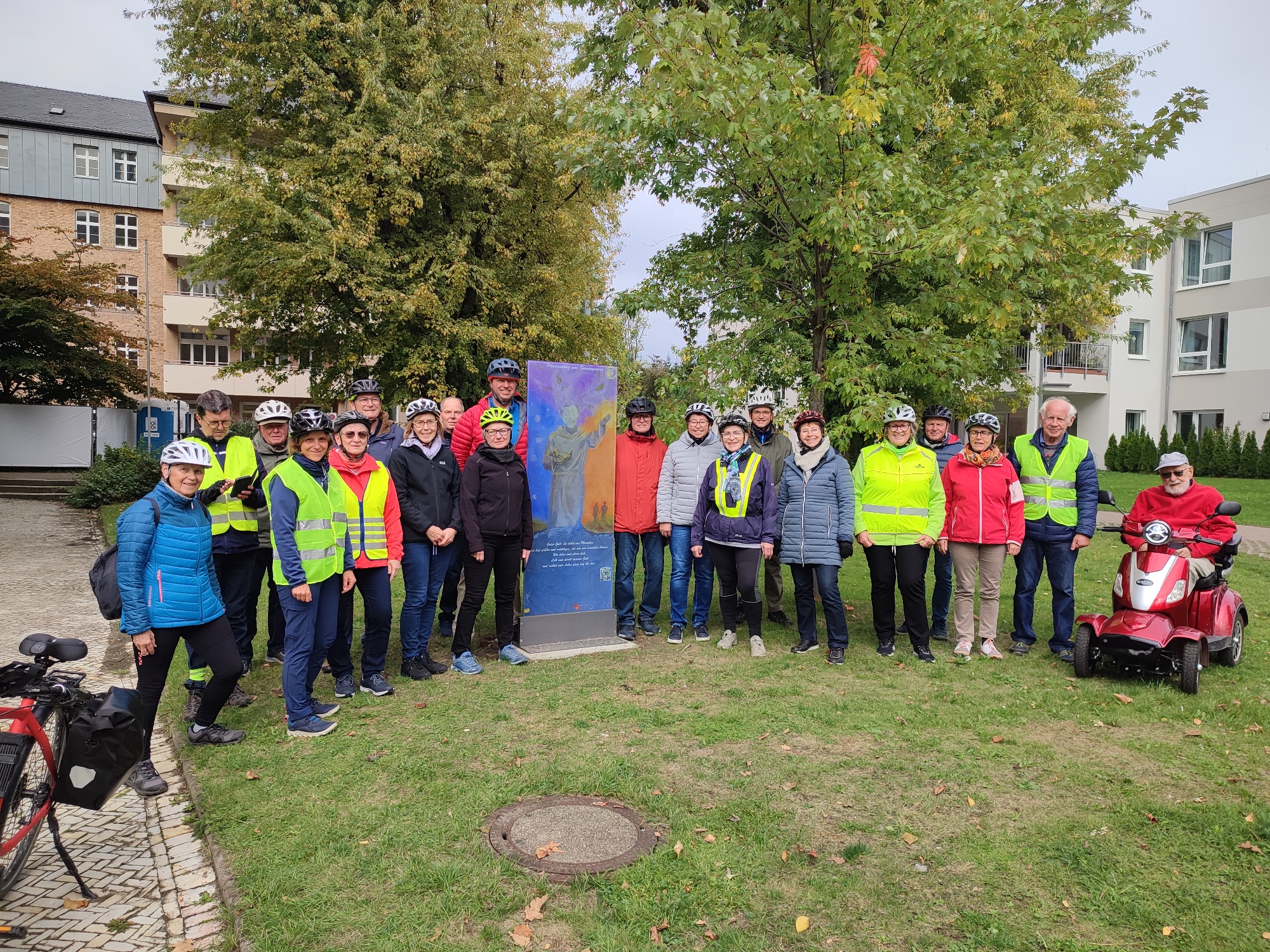 Am 12. Oktober hat sich vermutlich die erste Pilgergruppe auf den Weg gemacht und ist den gesamten Radpilgerweg abgefahren. 19 Frauen und Männer starteten um 13 Uhr an dem Gradierwerk in Salzkotten. In Verlar wurde am Dorfplatz eine längere Pause eingelegt und in Holsen gab es einen geistlichen Impuls in der "Lichterkirche".