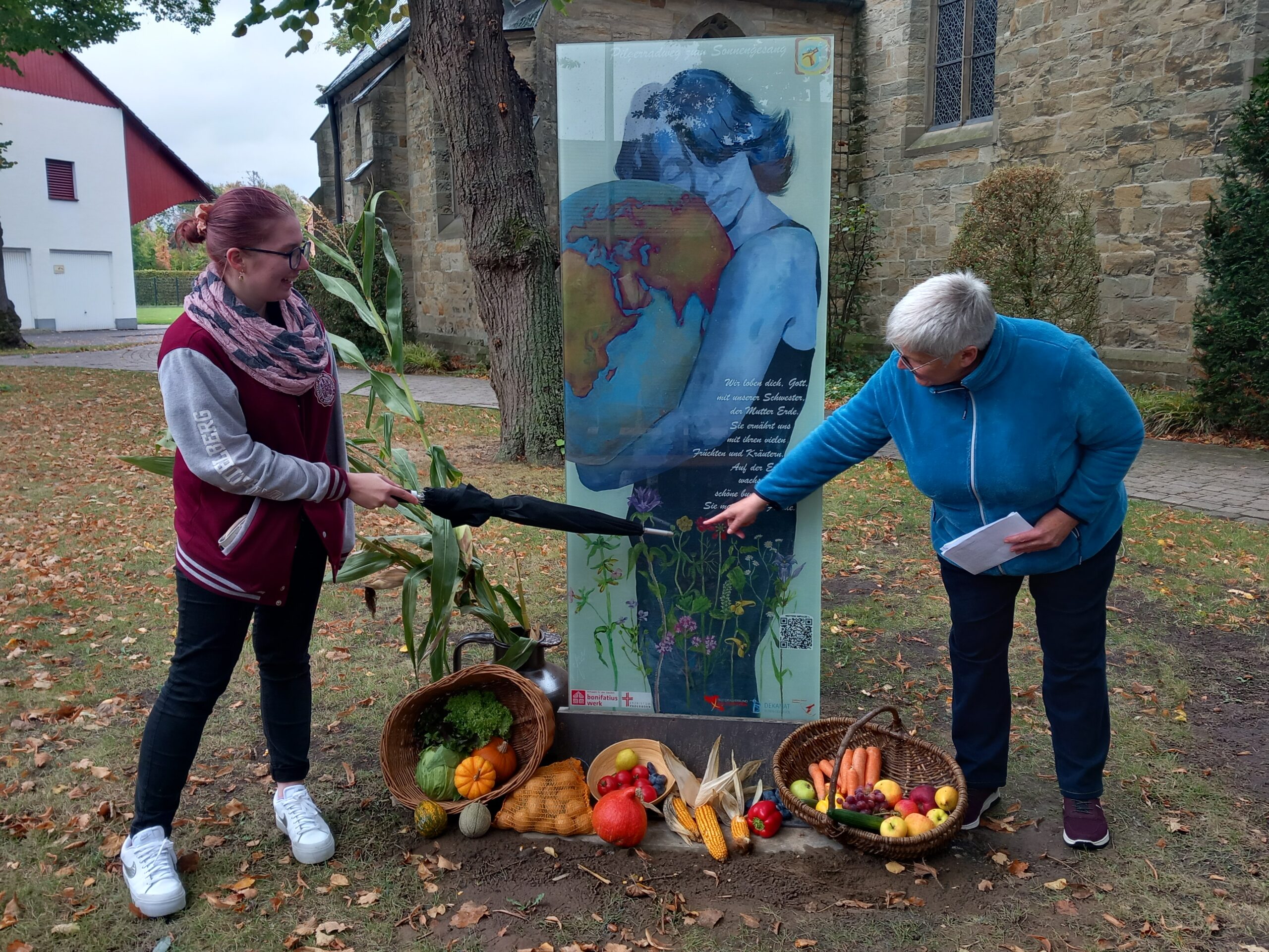 Vorstellung des Sonnengesangs des hl. Franziskus in seiner Theologie, zuvor der Sonnengesang meditativ im Klostergarten, Frage: "Was gibt es alles an unserem Ort, was wir dem Sonnengesang zuordnen können? Wo im Pastoralverbund kommt das Thema/die Strophe noch vor und wie lässt dich darauf verweisen?" Sammeln von weiteren Ideen.